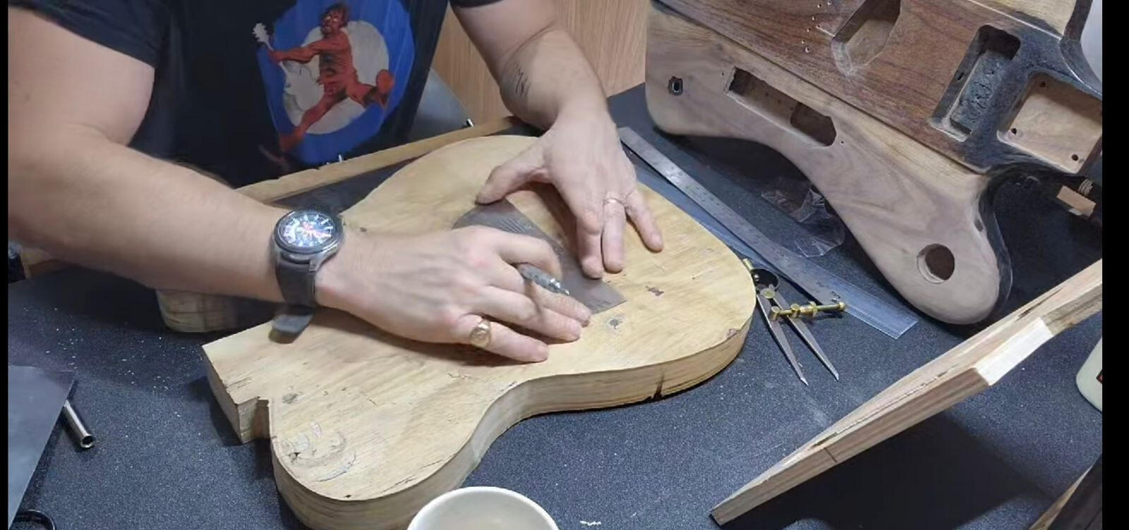 Eleni passed away on 2 August 2024, after fighting bone cancer for 11 months. She had just turned 21. Losing her was the most devastating experience. Yet, through her boundless positivity, determination, kindness, and remarkable sense of humour, she has helped us to stand strong again and move forward, living life with her spirit beside us.Her grandfather, whom she called Ra-Ra, gave her the nickname "Lels," and it stuck. Eleni was quite casual about having her name on my guitars, but it felt just right to me. The logo combines the elephant tattoo Eleni designed and had inked on her ankle when she turned 18, with the elephant’s legs spelling her name in ancient Nordic runes. Elephants were Eleni’s favourite animal (also mine and my grandmother’s).I have been building guitars for years, learning through trial, error, and passion. Each instrument is handmade here in Abu Dhabi — from selecting the wood to shaping, sanding, and polishing. The necks are built to my specifications, as they require extreme precision. No CNC machines, just hand tools and dedication.